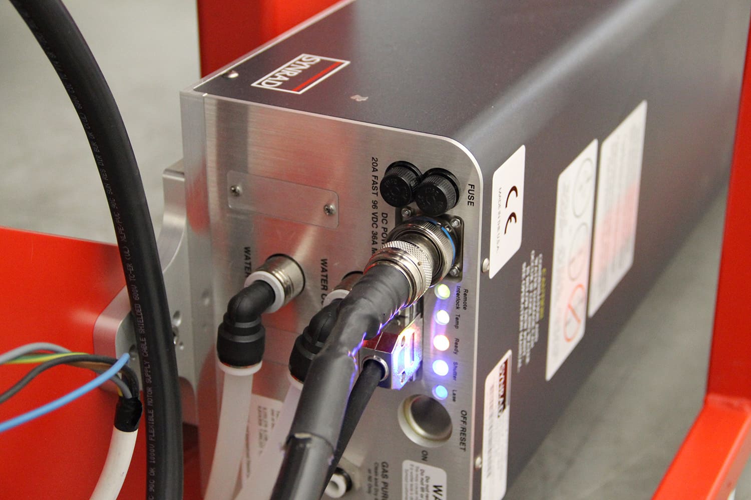 Typ laseru Synrad CO₂ uzavřený, s vlnovou délkou 10,6 µm
